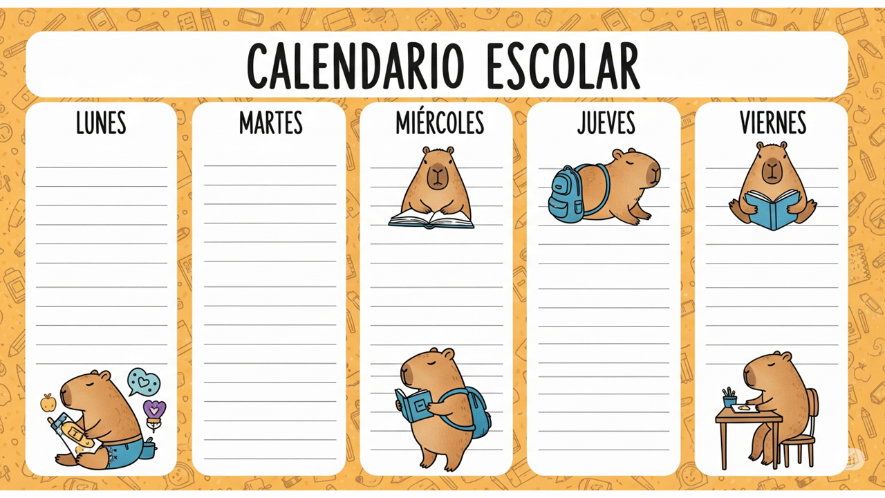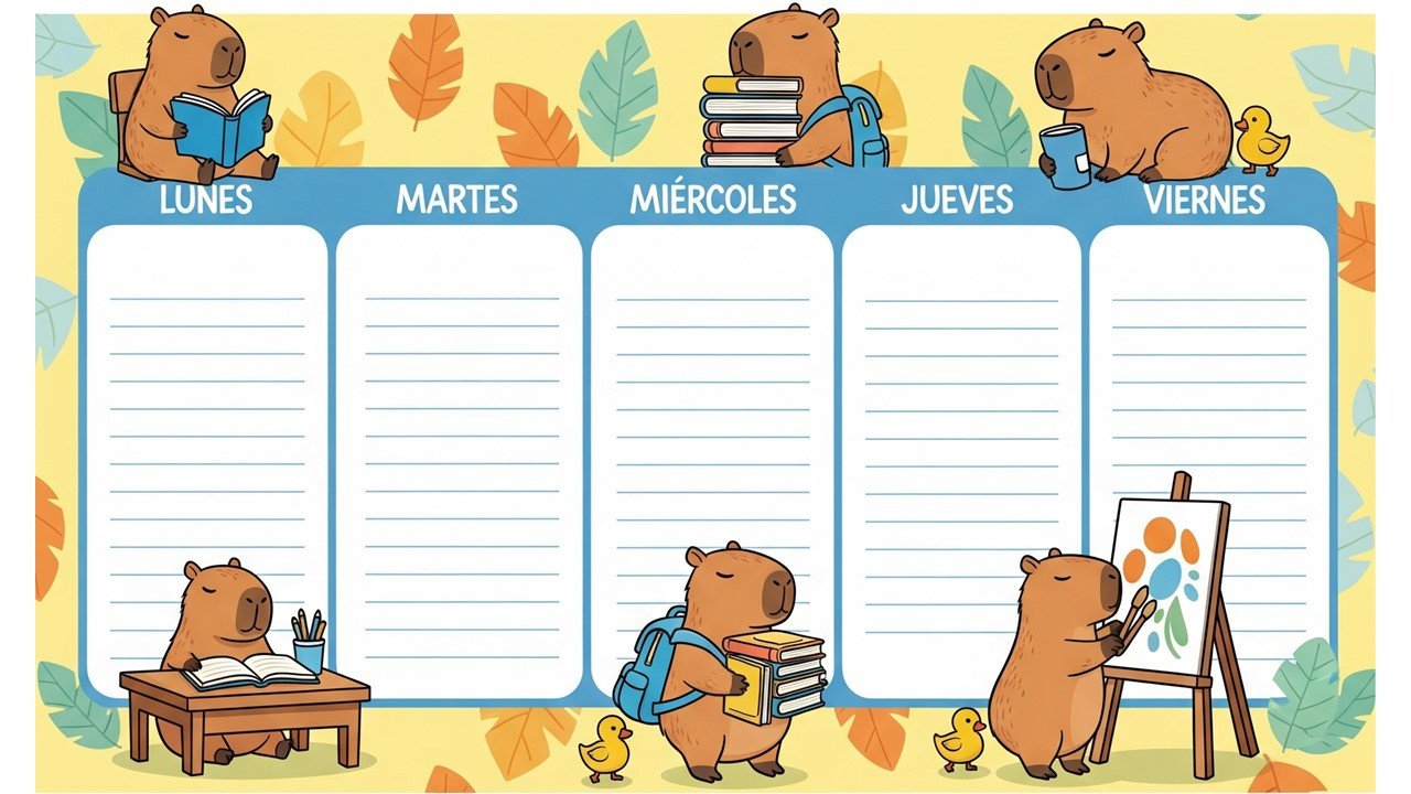 Personaliza los útiles escolares de tus hijos con nuestro kit digital de capibara y acompáñalos en un año escolar lleno de calma y diversión.