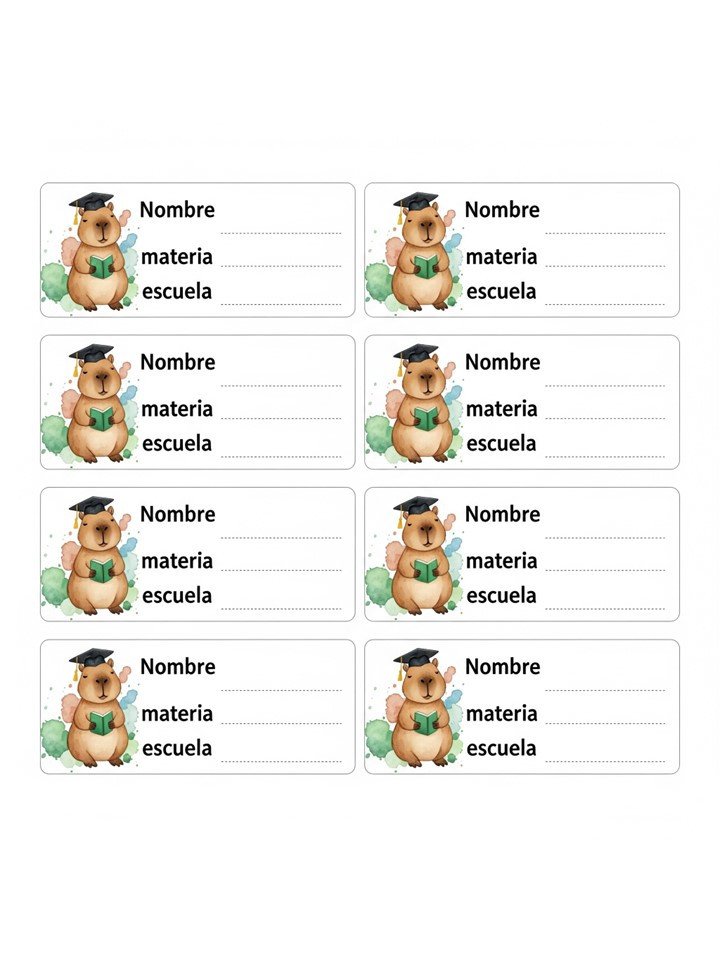¡La ternura llegó a la escuela en forma de capibara! Con nuestras etiquetas escolares de capibara, tus hijos podrán personalizar todos sus útiles con el animal más relajado y adorable del reino animal.