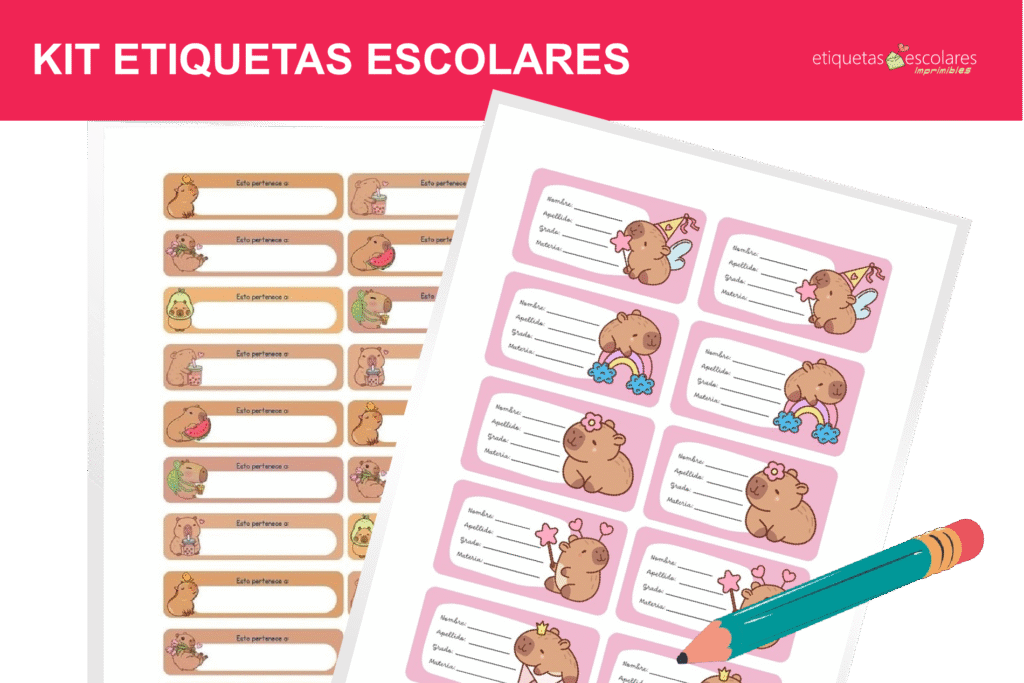 Kit Imprimible de Etiquetas Escolares de Capibara